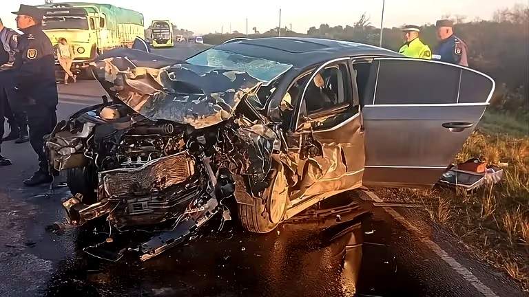 El accidente entre los dos autos se produjo en la ruta 39 en la provincia de Entre Ríos (Foto: Web La Pirámide)“Uno de los vehículos está irreconocible, si uno lo mira no sabe la marca, nada”, afirmó el comisario. Mientras que confirmó que el Passat, en el que se trasladaba el hombre que se encuentra en estado crítico, “es un vehículo oficial” que sería de un ente provincial.
