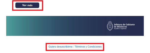 El mail es enviado desde la dirección “hola@comunicacion.argentina.gob.ar” e incluso cuenta con un banner de la Jefatura de Gabinete de Ministros.