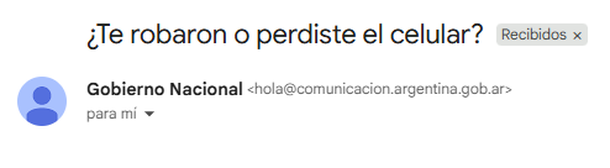 Alertan por estafa con falso mail del Gobierno: «¿Te robaron o perdiste el celular?»