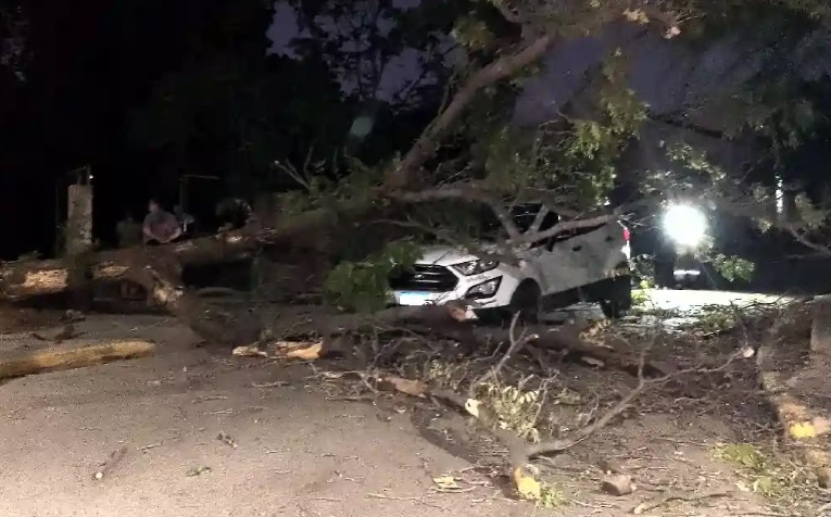 Ayer, en horas de la noche en medio de un fuerte viento, una mujer de apellido Gutiérrez (33) que manejaba su Eco Sport fue sorprendida por el desplome de un árbol de importante tamaño que cayó sobre el auto cuando transitaba por calle Bárcena e Hipólito Yrigoyen.