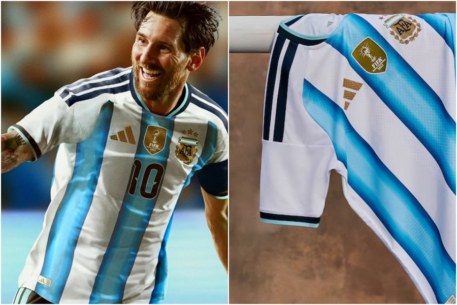 A ocho meses del inicio de la Copa del Mundo en Qatar 2022, se filtró el diseño de la camiseta argentina. Las franjas presentaban una disposición inusual: dos franjas azul cielo más delgadas en el centro y dos más anchas en los laterales, siendo estas últimas aproximadamente tres veces más anchas que las centrales.