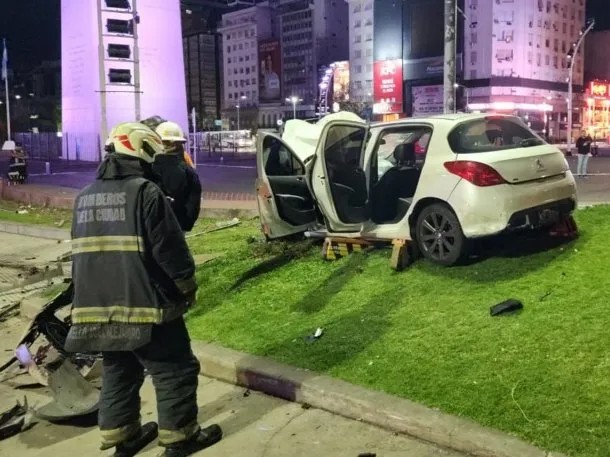 El vehículo circulaba sobre la avenida 9 de Julio, de Norte a Sur, y a través de una mala maniobra colisionó contra el semáforo peatonal y barandas de contención, y quedó sobre el parquizado de la plazoleta Sur del Obelisco.