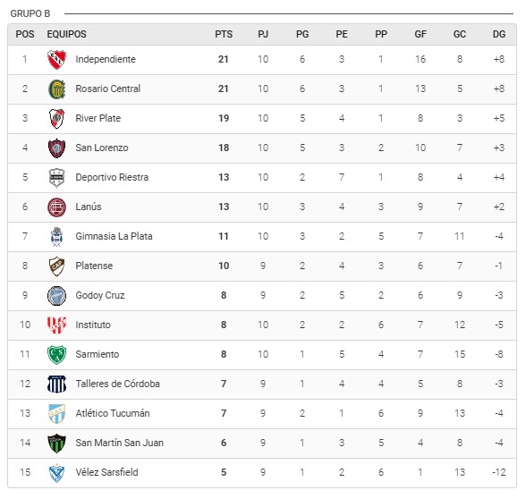El Millonario quedó tercero con 19 puntos y está a dos de los líderes, Rosario Central e Independiente. El Canalla venció 2-1 a Gimnasia de La Plata y escaló a lo más alto, mientras que el Rojo rescató un punto en el choque frente a la Academia.
