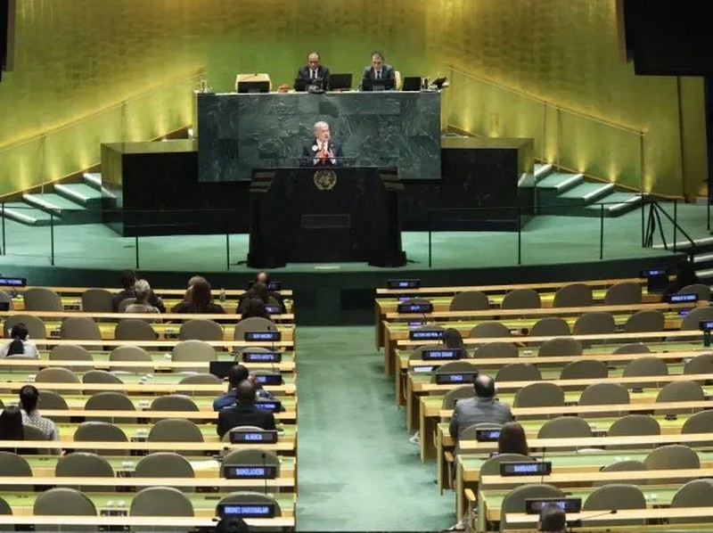 A modo de protesta por el genocidio en Gaza, la gran mayoría de las delegaciones en la ONU abandonaron el recinto cuando Netanyahu se aprestaba a pronunciar su discurso. Argentina, uno de los pocos países en respaldar al primer ministro de Israel y su cruenta invasión.