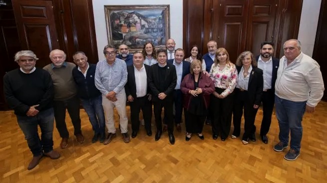 El gobernador Axel Kicillof y el ministro de Trabajo Walter Correa recibieron este lunes a dirigentes de las tres centrales sindicales en la Casa de Gobierno de la provincia de Buenos Aires, en el marco de la reciente resolución judicial que volvió a habilitar la reforma laboral impulsada por el presidente Javier Milei.