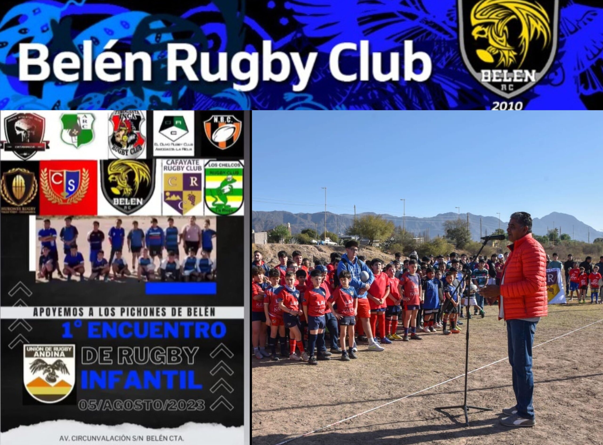 Con Fecha 05/08/2023 se realizó en nuestras instalaciones el PRIMER ENCUENTRO del bloque infantil de nuestro Club, dentro del marco de la serie de encuentros organizados por la Unión que nos nuclea la cual es la UNION ANDINA DE RUGBY, integrada por las provincias de La Rioja y Catamarca, en dicho encuentro asistieron una totalidad de 8 clubes con una asistencia participativa de 206 jugadores, niños entre los 6 a 14 años, a ellos se les suman los entrenadores de cada club, división, como así también lo managers, coordinadores, padres y familia que acompañaron a los niños a dicho encuentro. Como en cada encuentro que se realiza en cada club organizador el mismo tiene un breve acto protocolar, de recepción de las delegaciones, palabras de bienvenida, los agradecimientos propios a todo colaborador, asistente, auspicios, etc. y dado el carácter del mismo, ya que era el primer encuentro del año, las palabras alusivas por parte del coordinador gral. De los bloques infantiles de la unión y por supuesto de nuestro director de deportes de la ciudad de Belén, a quien le estamos muy agradecidos por el apoyo y acompañamiento brindado, el Sr Ortiz. A ello se le sumó en la misma oportunidad, y aclaramos que lo hizo por pedido propio, las palabras del Sr. Intendente Daniel E. Ríos, quien además de dar la bienvenida y mostrarse contento y eufórico por dicho evento, ANUNCIÓ EL OTORGAMIENTO DE UN SUBSIDIO DE UN MILLÓN DE PESOS ($1.000.000), el cual estaría destinado a obras o necesidades que requiera el club, palabras que el sr. Intendente pronunció delante de todos los presentes y quienes celebraron dicho anunció en virtud de que conocen la realidad de nuestro club y que era una ayuda necesaria y fundamental para el crecimiento de nuestra institución tanto en infraestructura como deportivamente.