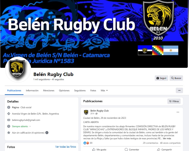 Carta abierta de la Comisión del Club Belén Rugby Club
