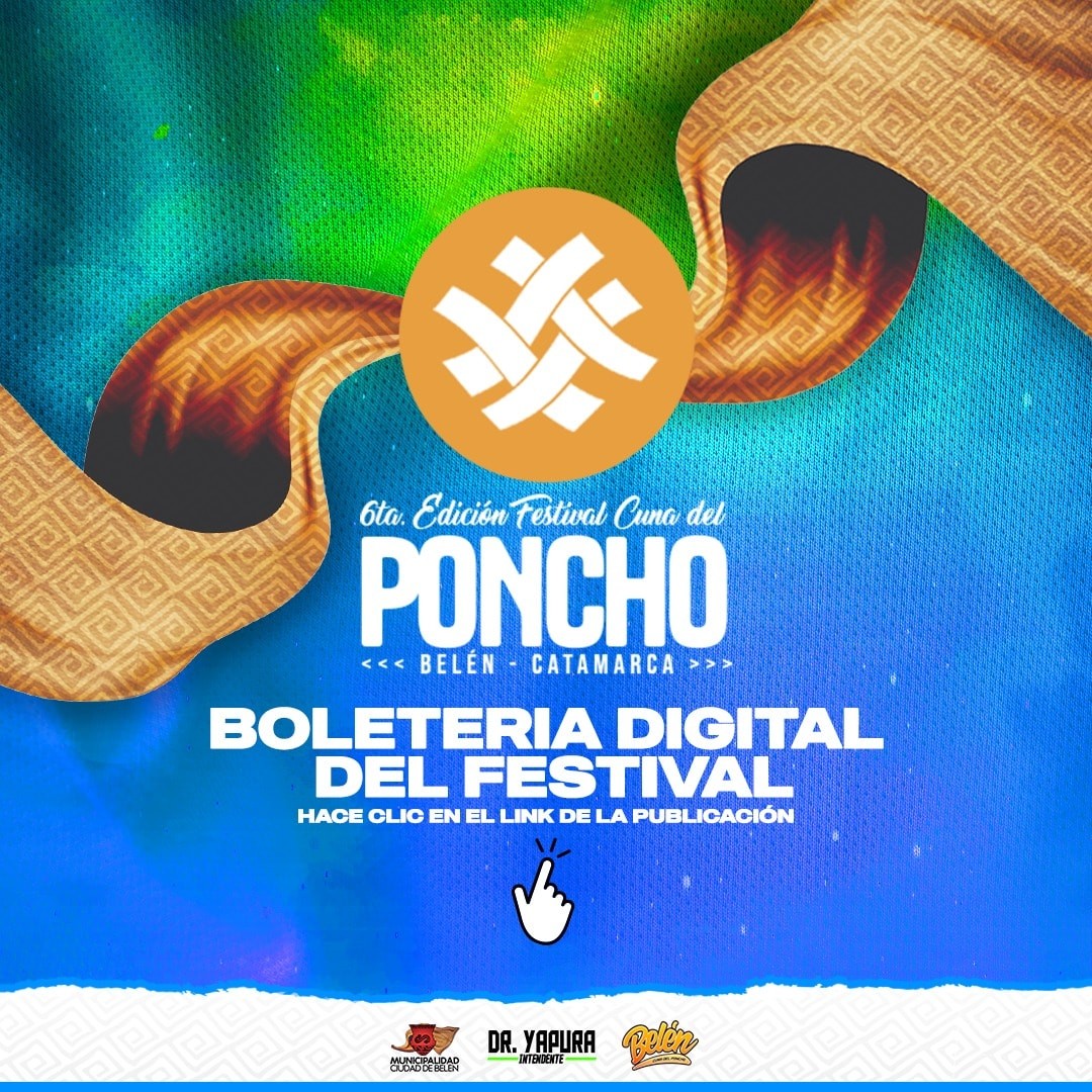 La 6° Edición del Festival Cuna del Poncho que se llevará a cabo  los días 20 y 21 de Julio en la ciudad de Belén – Catamarca con una importante cartelera con artistas  Locales, Provinciales y  Nacionales, comenzó la venta anticipadas de entradas vía online. Evento que contará con la presentación para el día Sábado 20 con Lucio Rojas, Llokallas, Palmae, para el Domingo Canto del Alma, Ahyre y LBC y Eugenia Quevedo .