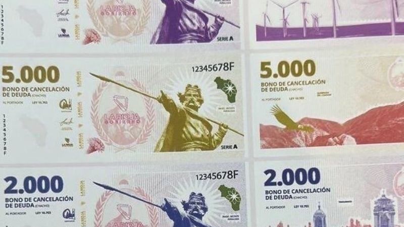 La Legislatura de la provincia de La Rioja aprobó en enero del 2024 la emisión de un bono de cancelación de deuda (bocade), una cuasimoneda, con el que se pagará el 30% del salario del personal de la administración pública en todas las áreas de la provincia. Ahora se conoce el diseño y nombre: se llama «el Chacho».