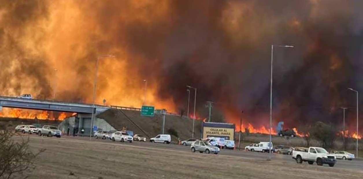 Córdoba. Incendio en la zona de La Mezquita: cortaron la autopista a Carlos Paz y hay cuatro bomberos heridos