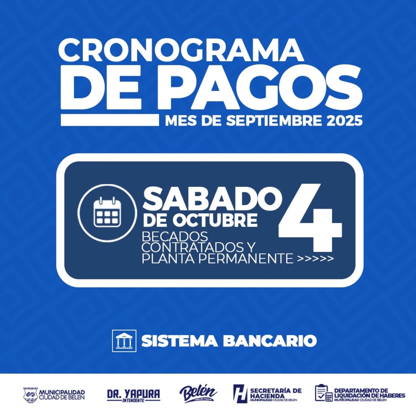Desde el Municipio de Belén informaron que el  pago correspondiente al mes de septiembre de 2025 se realizará en la siguiente fecha: