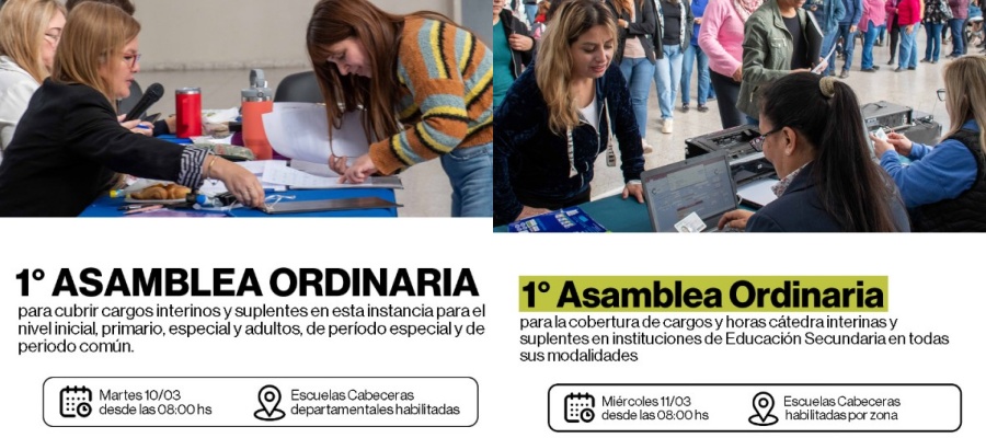 En esta primera asamblea ordinaria del año, se ofrecerán más de 400 cargos docentes en distintos establecimientos educativos del territorio provincial, lo que permitirá fortalecer el funcionamiento de las escuelas y asegurar que cada aula cuente con su docente.