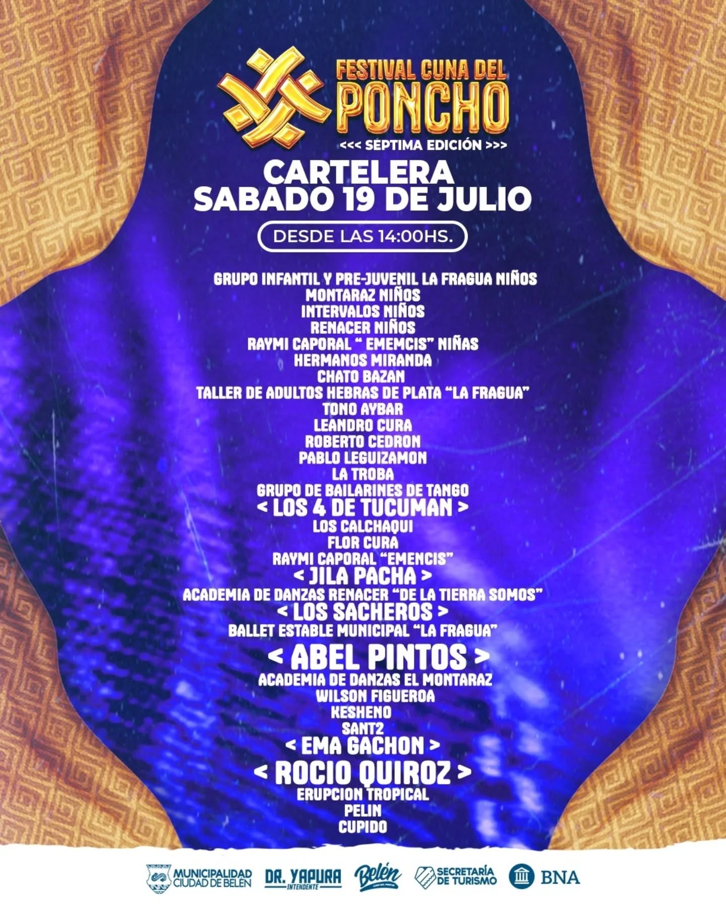 Belén se viste de fiesta este sábado para dar inicio a la Séptima Edición del esperado Festival Cuna del Poncho, un evento que celebra la cultura, la música y las tradiciones de nuestra tierra. Desde las 14:00 horas, el escenario principal se encendió para recibir a una nutrida cartelera de artistas locales, provinciales y nacionales, prometiendo una jornada inaugural inolvidable.