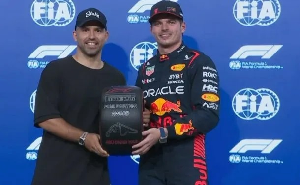 El Kun Agüero le entregó el premio de la pole a Max Verstappen