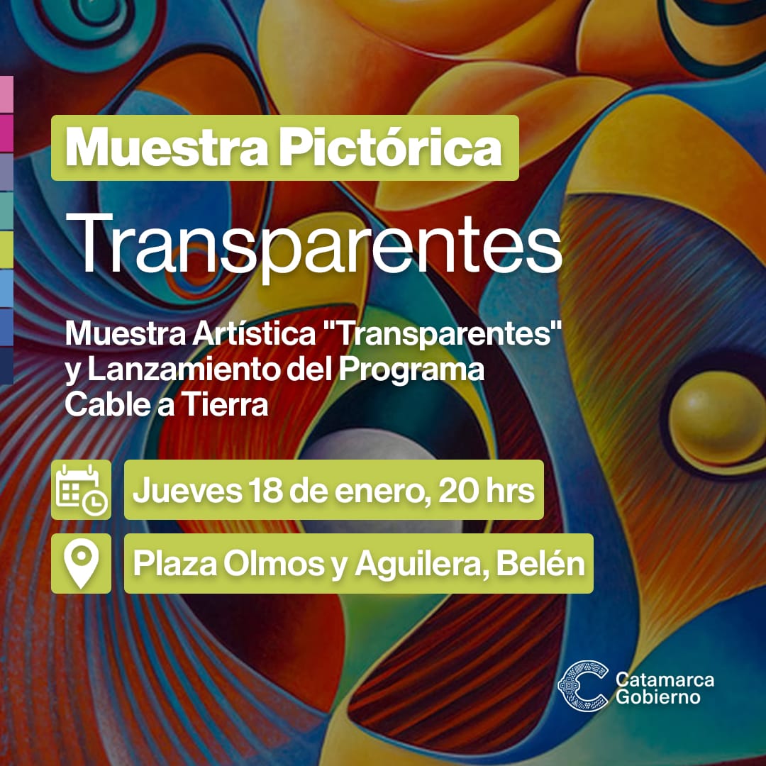 La muestra pictórica expondrá trabajos realizados con el programa “Transparentes”, un programa de intervención artística comunitaria que jóvenes autores de la Red Puentes pudieron realizar y que fue presentado el pasado 5 de diciembre. “La idea es replicar el programa en Belén, va a estar dirigido por la artista plástica Elizabeth Yapura, oriunda de de Belén, quien también estuvo trabajando el año pasado en Capital”, finalizó el secretario Aibar.