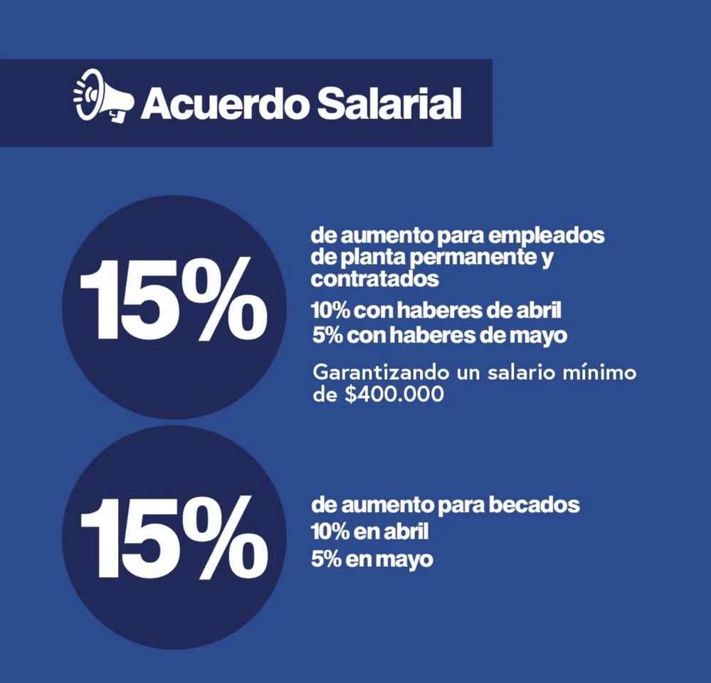 Personal Becado: En un esfuerzo por equiparar los beneficios, los becados también recibirán un incremento del 15%, distribuido en un 10% en abril y el 5% restante en mayo.