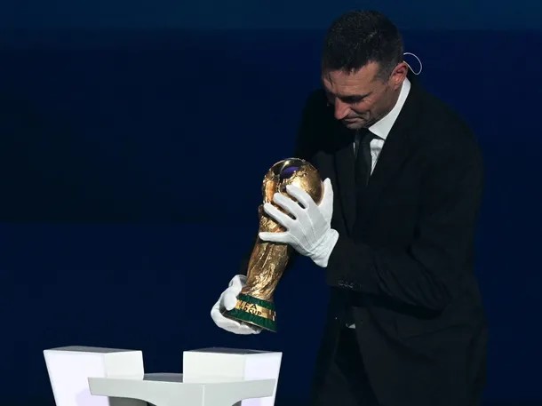 La FIFA instauró la tradición de que el entrenador que conquistó la última cita mundialista sea quien porte el trofeo en la ceremonia de sorteo. En la previa de Qatar 2022, el encargado fue Didier Deschamps (campeón con Francia en 2018), mientras que esta vez, el honor le corresponde al oriundo de Pujato.