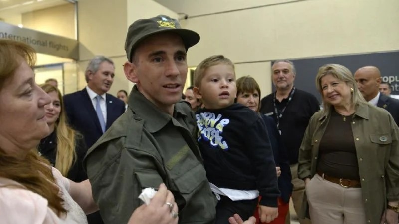 El gendarme recientemente liberado por el Gobierno venezolano, regresó al país y se reencontró con su esposa, María Alexandra Gómez, y su hijo Víctor, en el Aeropuerto Internacional de Ezeiza.