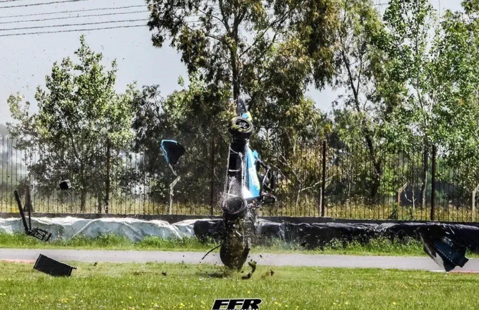 En el segundo entrenamiento de la Fórmula 4 Nueva Generación en el autódromo de La Plata, el de Caleta Olivia perdió el control del auto del Cepeda Racing y comenzó una serie de tumbos.