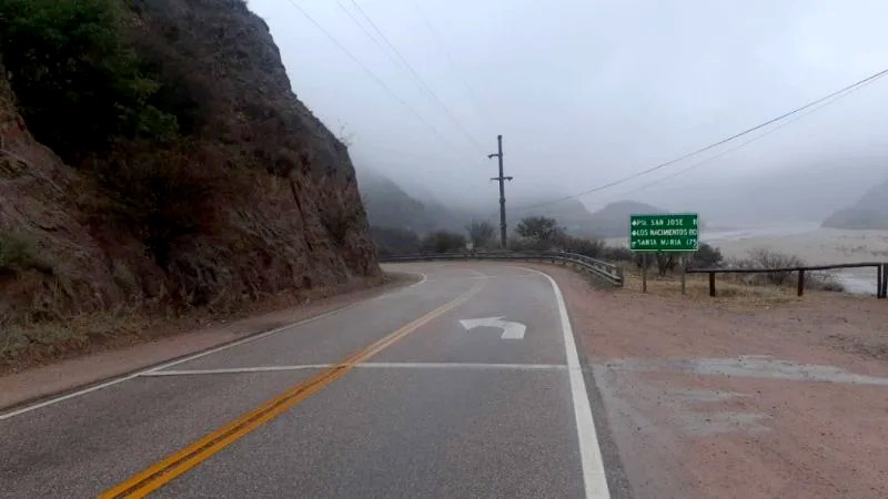 En Cuesta del Totoral la visibilidad es reducida por niebla y llovizna. Disminuir la velocidad habitual y encender luces bajas y faros antiniebla.