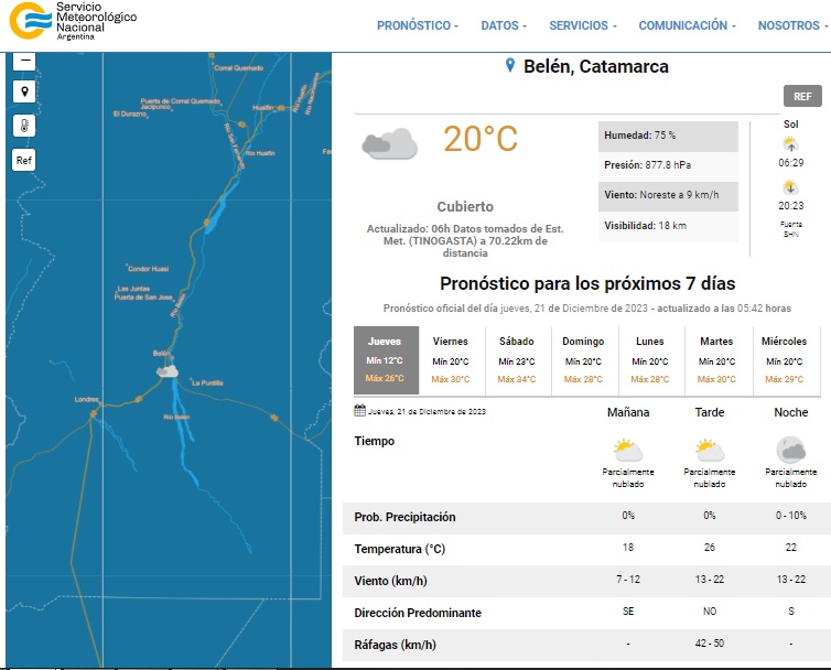 Estado del tiempo y pronóstico para Belén