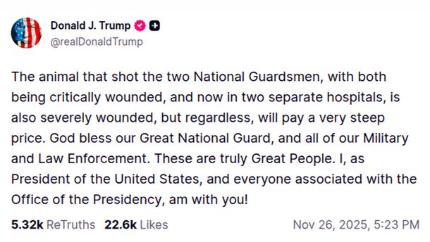 Dos miembros de la Guardia Nacional están en estado crítico tras haber sido baleados a metros de la Casa Blanca mientras Donald Trump se encontraba en Florida.