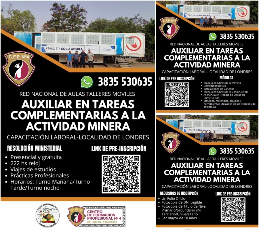 El Centro de Formación Profesional N°4 tiene el placer de anunciar la apertura de las preinscripciones para el curso de Auxiliar en Tareas Complementarias a la Actividad Minera.