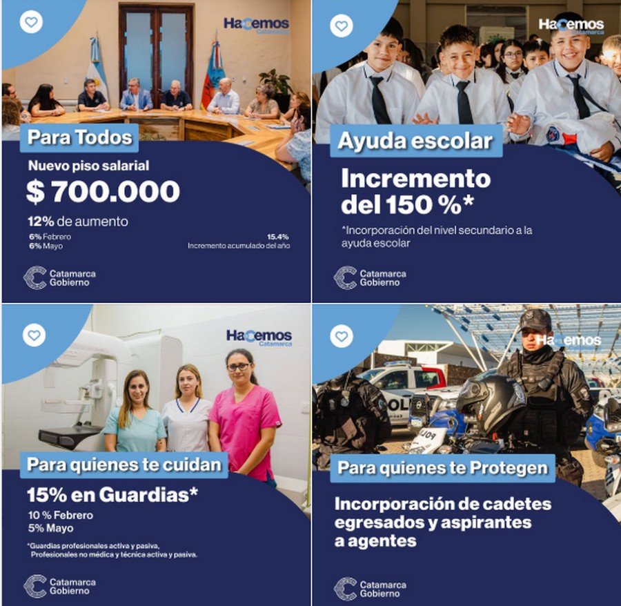 En el entendimiento específico con el sector de Salud, se definió un aumento de la guardia profesional activa y pasiva, profesional no médica y técnica activa y pasiva que será del 10 % en febrero y un 5 % en mayo, beneficiando a quienes realizan estas tareas, incluidas los de fines de semana y feriados.