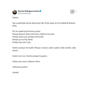En el mismo texto había señalado que “los grandes logros de nuestra gestión se están diluyendo: la ciudad está sucia, sin mantenimiento, volvieron los baches, no se hacen obras y no hay respuestas a los vecinos”. También cuestionó a Jorge Macri por las constantes fugas de presos de comisarías y alcaidías.
