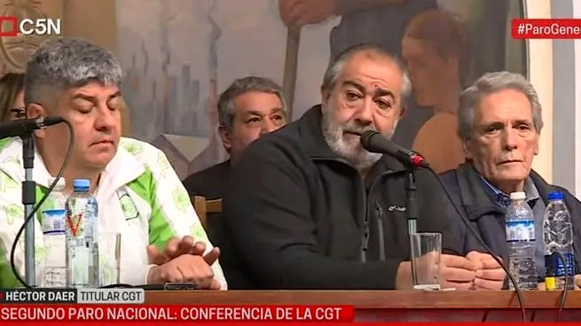 El triunviro calificó como un éxito la segunda medida de fuerza general contra el gobierno de Javier Milei. "Es un paro político, estamos discutiendo el rumbo del país", lanzó Héctor Daer, co-secretario general de la CGT.