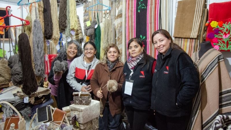 El NOA tiene una gran concentración de artesanos y artesanas textiles. En el caso de Jujuy, haciendo honor a esta tradición tejedora, exponen gran variedad de textiles en distintas fibras, pero llama particular atención el hilado de cabra, se trata de una fibra de alta calidad que suele compararse con los casimires. Las representantes de Jujuy señalan, “la fibra caprina es parecida a la vicuña, por la dificultad del hilado, pero es un hilo de media estación”.