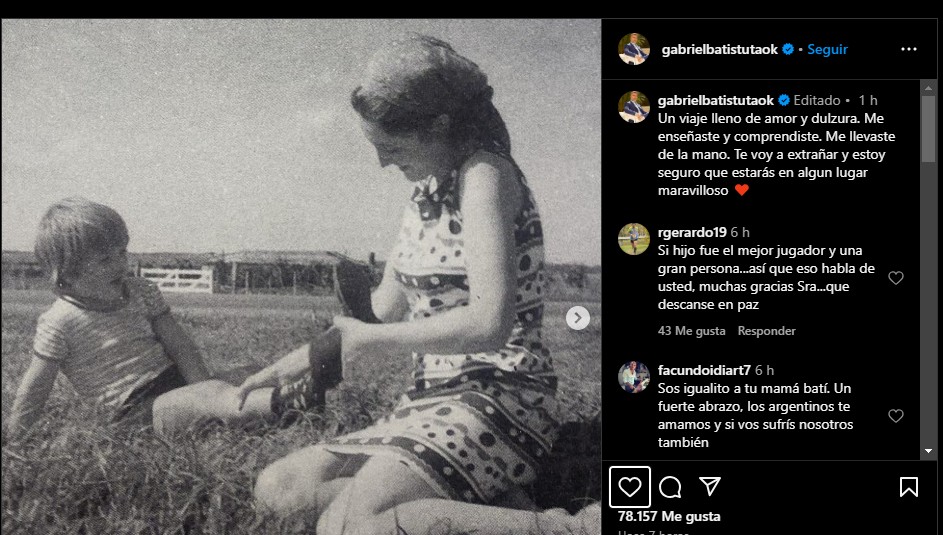 Este vínculo tan especial se reflejó en el homenaje que el exfutbolista le dedicó, una despedida llena de amor y gratitud hacia la mujer que, según él, fue su primera y más grande maestra. La pérdida de un ser querido siempre deja una marca profunda, y para Batistuta, la ausencia de Gloria será un golpe difícil de superar.