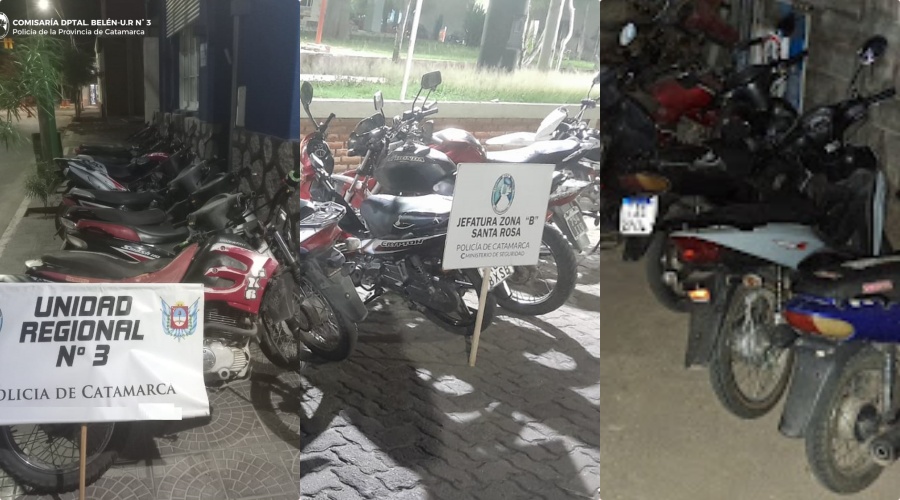 Entre la noche de ayer y la madrugada de hoy, mientras numerarios de la Comisaría de Los Altos, Departamento Santa Rosa, y de las Seccionales Belén, Departamento La Paz y Tinogasta, realizaban control vehicular en sus respectivas jurisdicciones, incautaron treinta y tres (33) motocicletas de diferentes marcas y cilindradas.