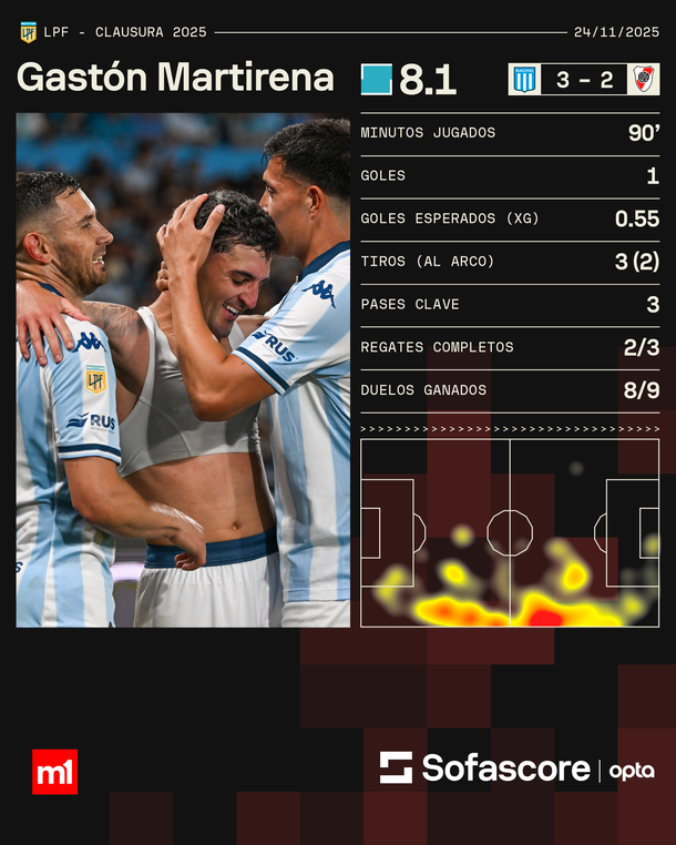 Racing se impuso 3-2 sobre la hora ante River en un partidazo en el Cilindro por los octavos del Torneo Clausura 2025, en el segundo capítulo del denominado clásico del morbo, y avanzó a cuartos de final.