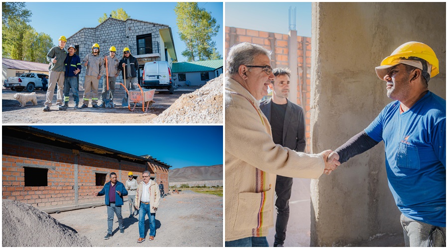 Además, las autoridades visitaron la Planta de Tratamiento de Efluentes Cloacales y la obra de 20 viviendas en El Peñón, ambas financiadas con fondos mineros. Las viviendas se caracterizan por su construcción rústica, utilizando materiales típicos de la zona como paredes de adobe y techos de machimbre. Se prevé que estén finalizadas aproximadamente para mediados de año.