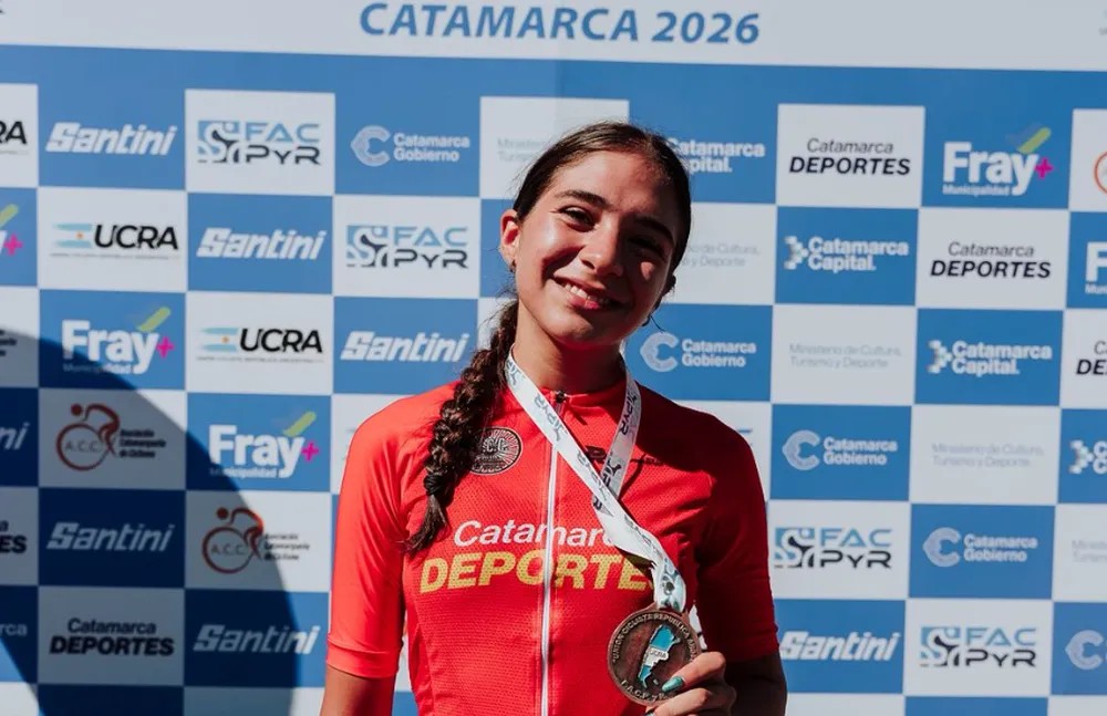 La velocidad del Campeonato Argentino de Ciclismo de Ruta, para Menores y Juveniles, inició este viernes por la mañana con la prueba Contrarreloj disputada sobre la Ruta Provincial N° 1 en Fray Mamerto Esquiú. En la categoría Damas Junior (2008 – 2009), Maite Ovejero logró la tercera posición obteniendo la medalla de bronce y se metió entre las tres mejores del país, haciendo su primera incursión en este tipo de competencia, ya que su especialidad es el Mountain Bike.