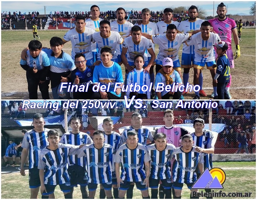 Se enfrentarán el Club Racing de las 250 viv. y el Club San Antonio de Belén donde el ganador será el representará al fútbol belicho en el próximo Torneo Federal Amateur, que tiene fecha de inicio para el domingo 29 de octubre.
