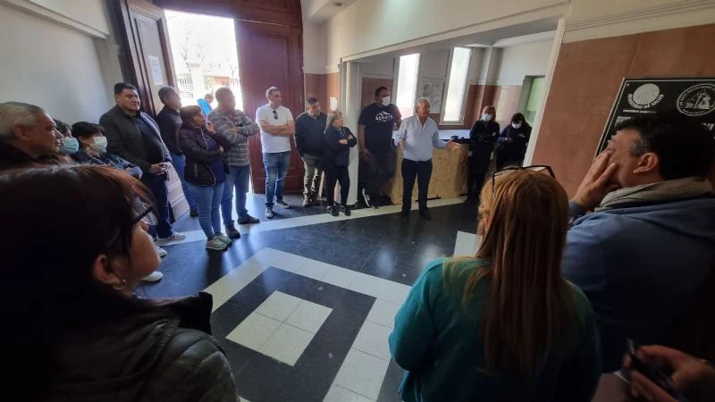 Ante la presencia de los medios, Burgos le explicó al personal cómo es la situación y de qué forma van a coordinar para solucionar sus inquietudes.