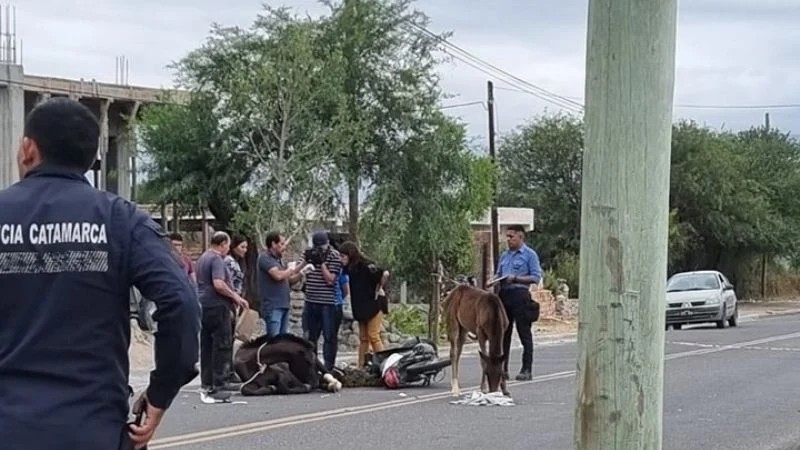 Esta mañana, a las 06:40, en la localidad El Cerrito, sobre Av. Diego Gutiérrez Pedraza a altura 1331, una motocicleta Honda Wave 110.cc., que circulaba con sentido Este a Oeste, al mando de Omar Pacheco de 19 años, impactó contra una yegua que estaba con su potrillo sobre la calzada.