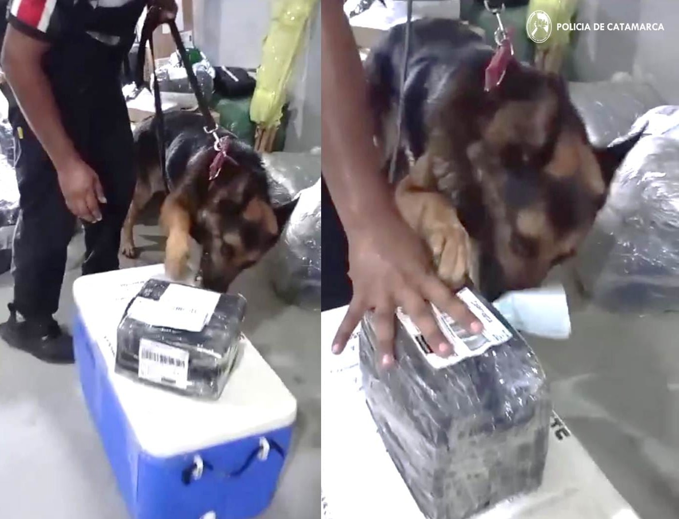 En el lugar, con la ayuda del can Laika, adiestrada para detectar estupefacientes, los investigadores encontraron en el interior de una encomienda, envuelta con cinta de embalar y papel film, una sustancia herbácea, que al ser sometida a la prueba de campo correspondiente, arrojó como resultado que se trataría de marihuana, apta para preparar unas 3.920 dosis, que quedó en calidad de secuestro, a disposición de la justicia interviniente, desde donde se indicaron las directivas a seguir.