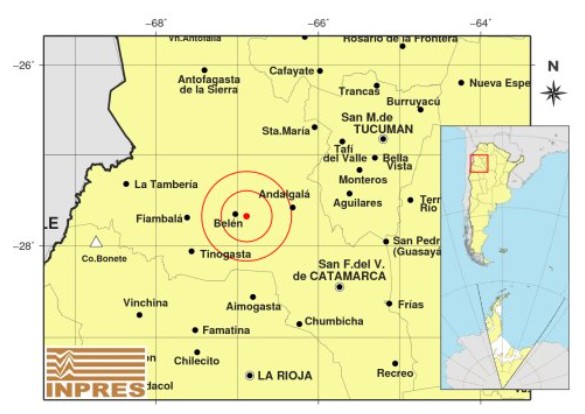 Un sismo de magnitud 3 se registró este jueves 17 de abril, a las 07:30 horas, con epicentro ubicado a 14 km al este de la ciudad de Belén; 58 km al O de Andalgalá; 79 km al NE de Tinogasta .