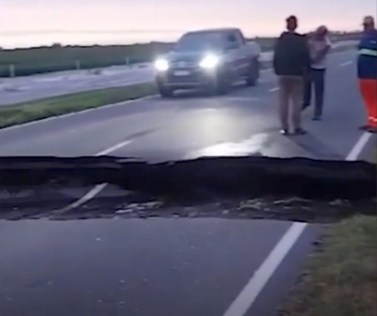 En las imágenes difundidas por los medios locales, se puede ver el formidable quiebre del asfalto de la ruta, que fue el resultado de la caída de 150 milímetros de agua que cayó en la zona. Por este motivo, la ruta quedó inhabilitada para circular.