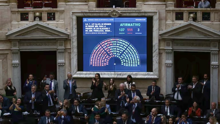 El proyecto de ley que modifica la Ley 26.639, de Presupuestos Mínimos para la Protección de los Glaciares y del Ambiente Periglacial, obtuvo 137 votos afirmativos, 111 negativos y 3 abstenciones.
