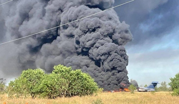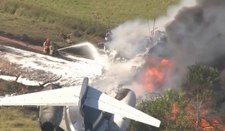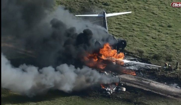 El avión McDonnell Douglas bimotor -según un funcionario local- fue destruido casi por completo por las llamas, según las imágenes impactantes difundidas por los servicios de emergencia.