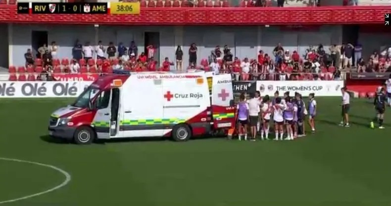 La jugadora de River Plate se desplomó en el suelo y comenzó a convulsionar, situación que preocupó a todos. Posteriormente fue retirada en ambulancia del encuentro que disputaron ambos equipos por el tercer puesto de la Women’s Cup.